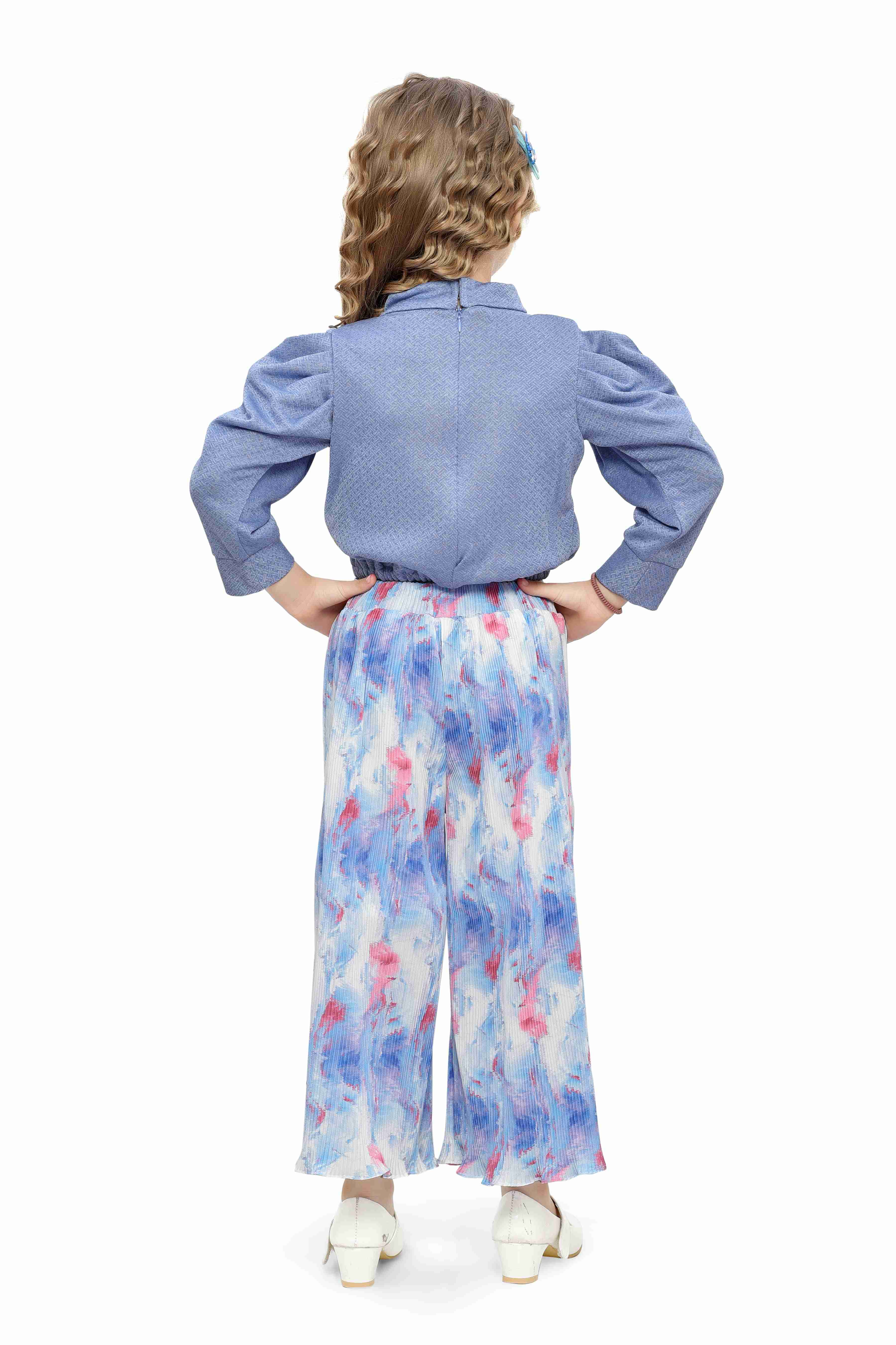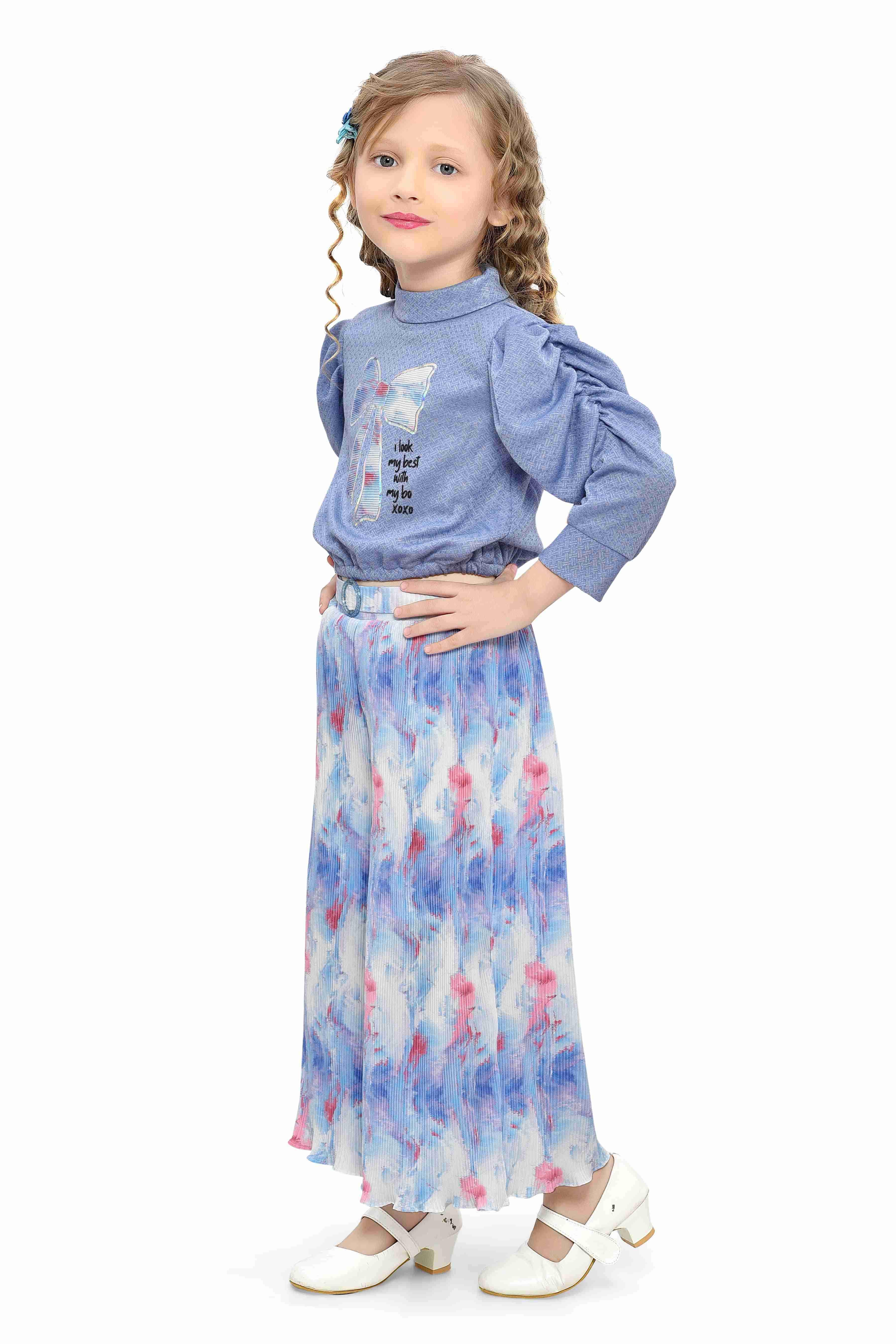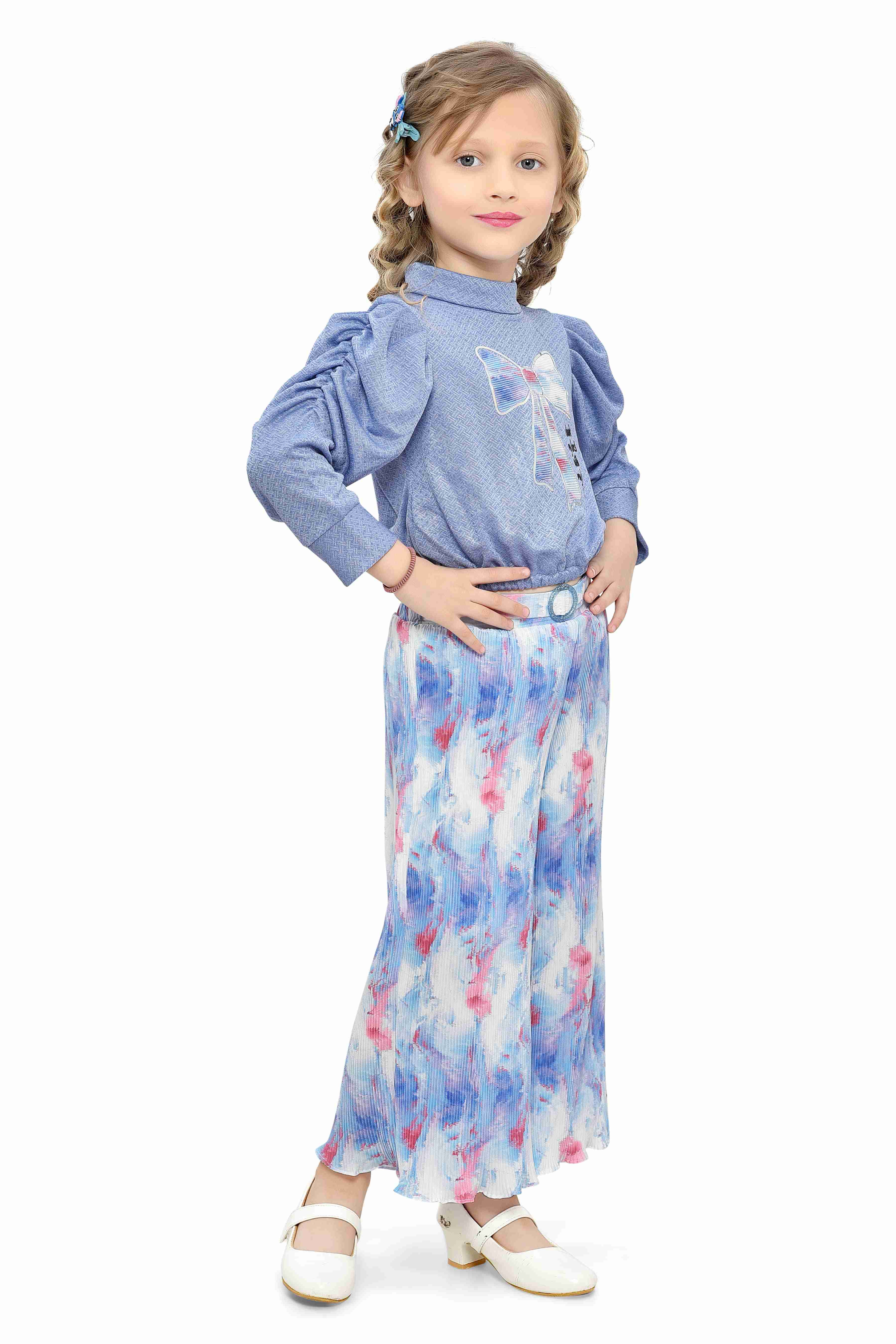 - Pants: The light-colored wide-leg pants boast a vibrant floral pattern that exudes a fresh, springtime vibe. The comfortable fit ensures your child can move freely, while the stylish belt detail at the waist adds a fashionable touch.