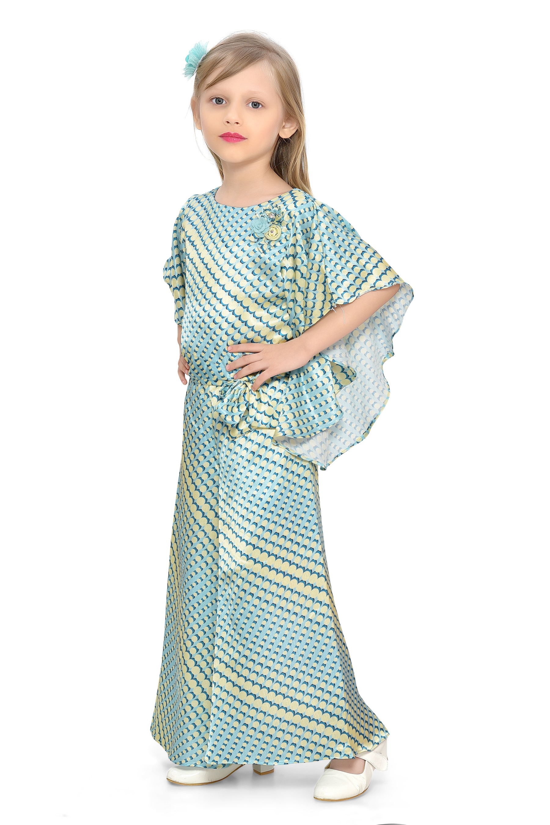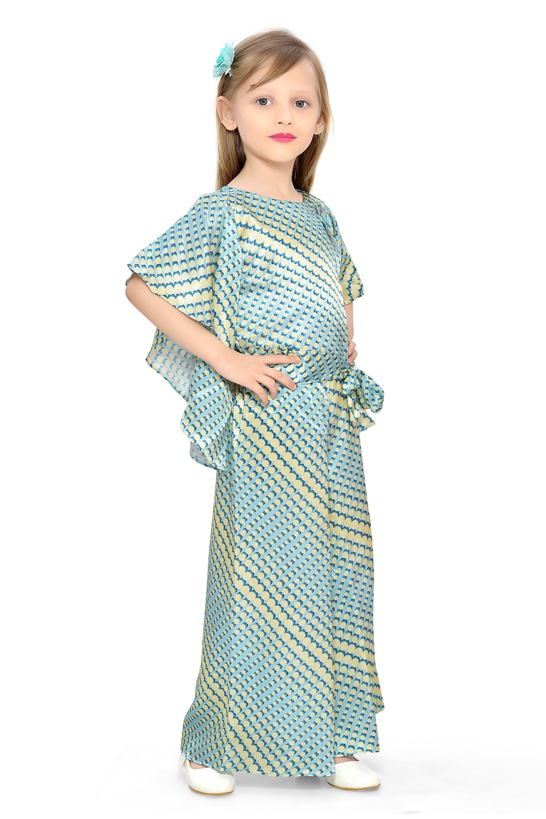 Bring a splash of color and pattern to your little girl's closet with the Be:Kids Green and Yellow Geometric Print Top and Pants Set. This vibrant and stylish two-piece outfit is designed to offer both comfort and fashion for any young trendsetter.