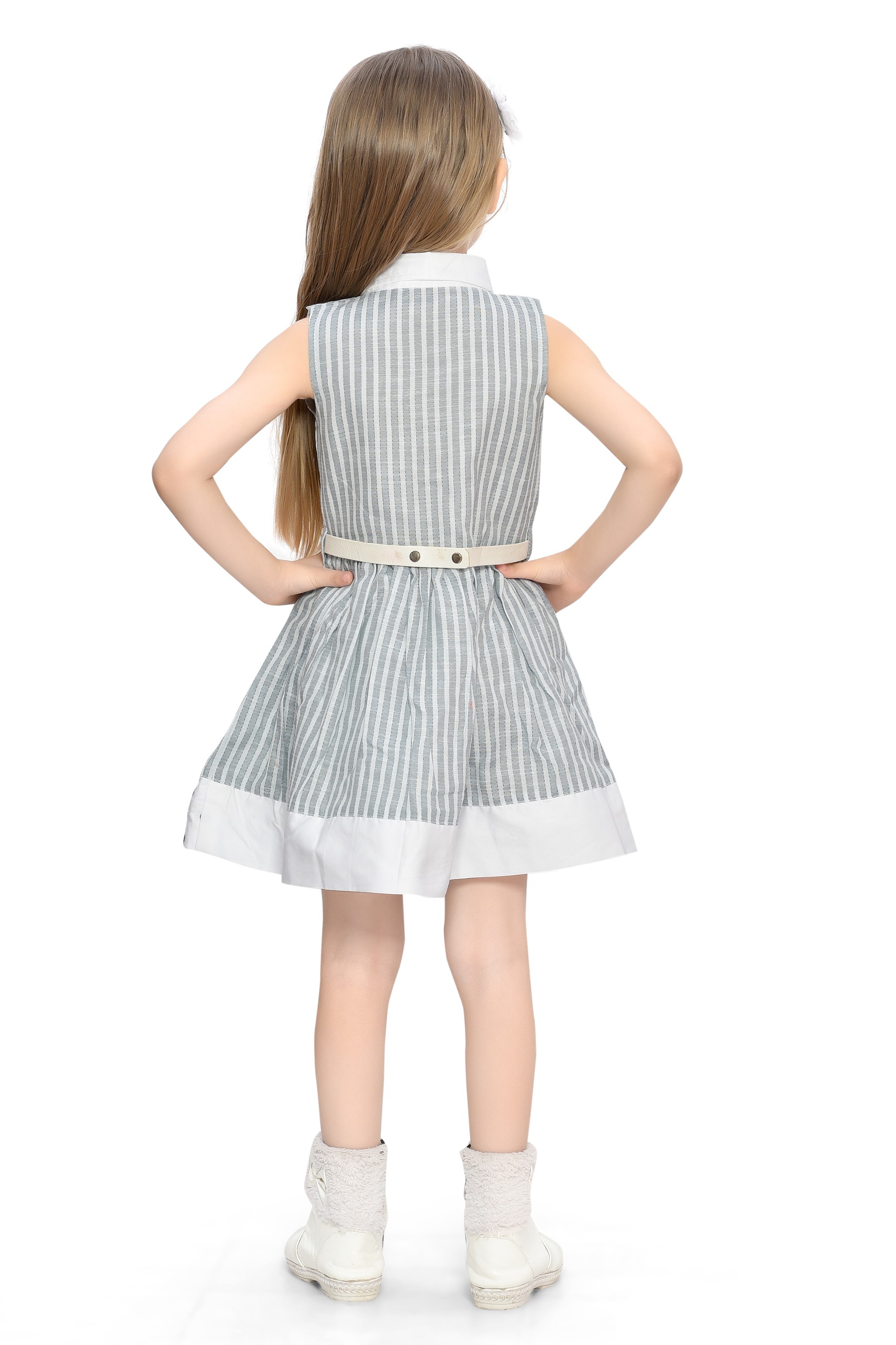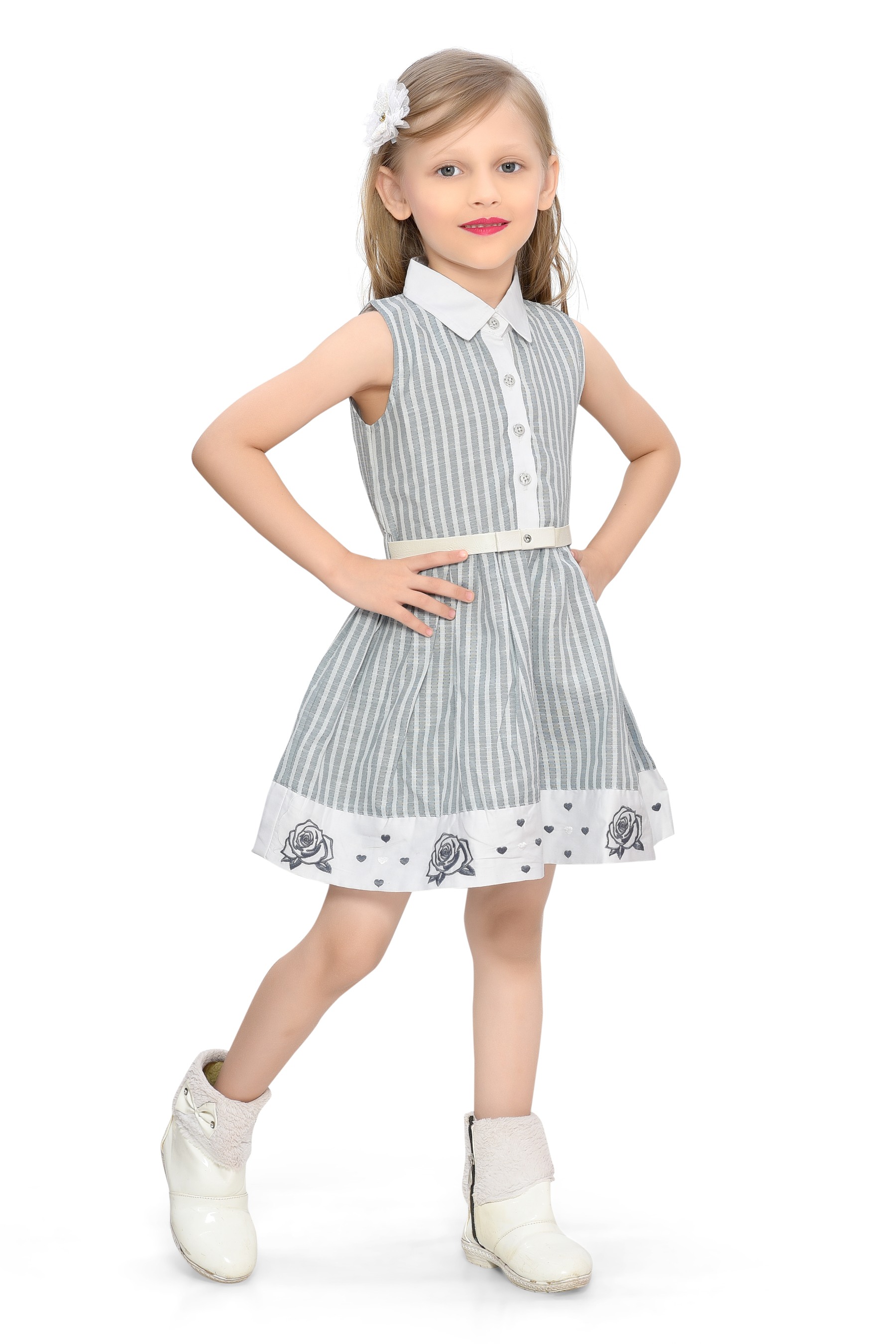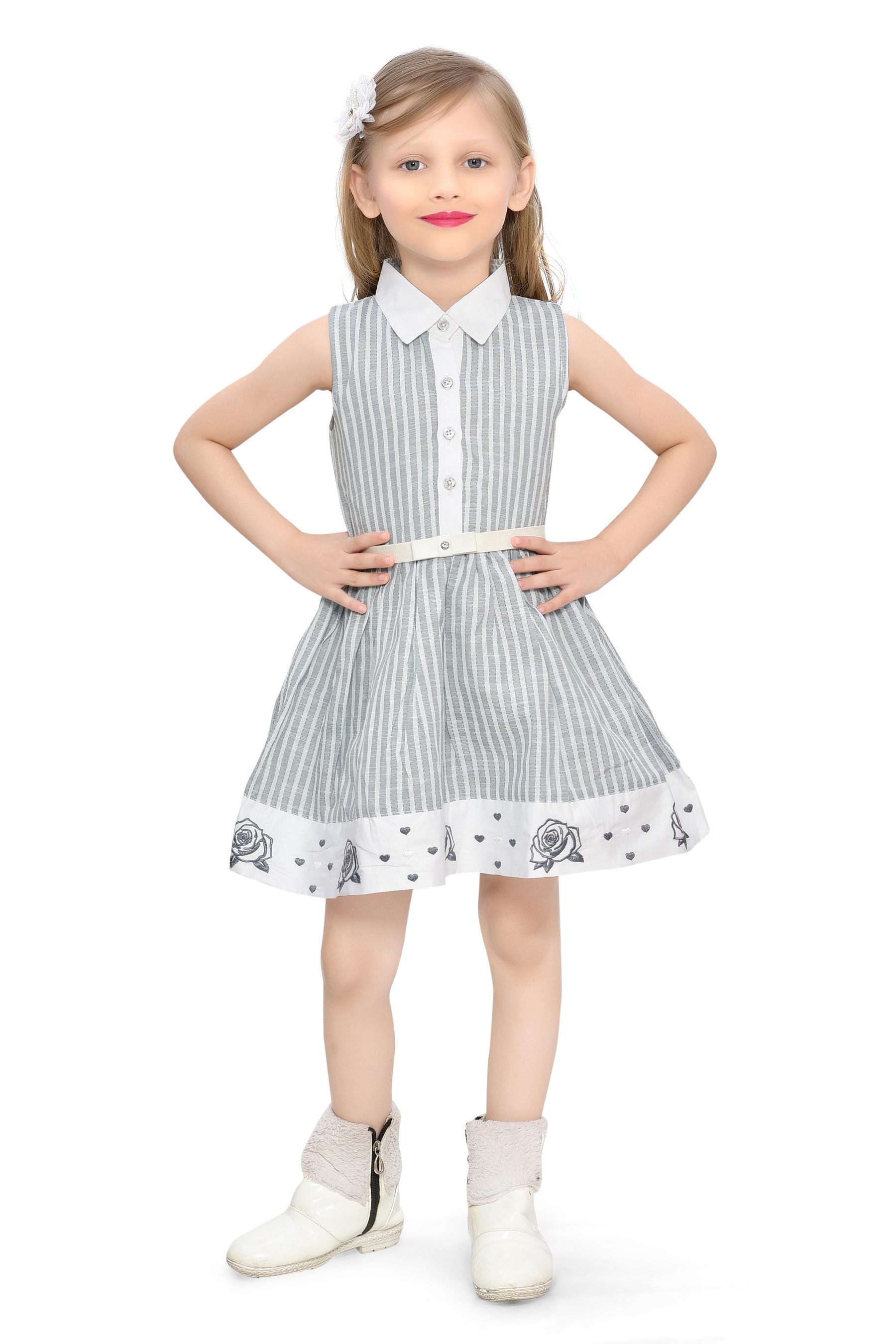 Introducing the Be:Kids Grey Sweet Summer Stripes and Roses Dress, a delightful addition to your little girl's wardrobe that's perfect for sunny days and special occasions alike. This charming dress features a fresh combination of vertical stripes and floral accents, creating a look that's both playful and stylish.