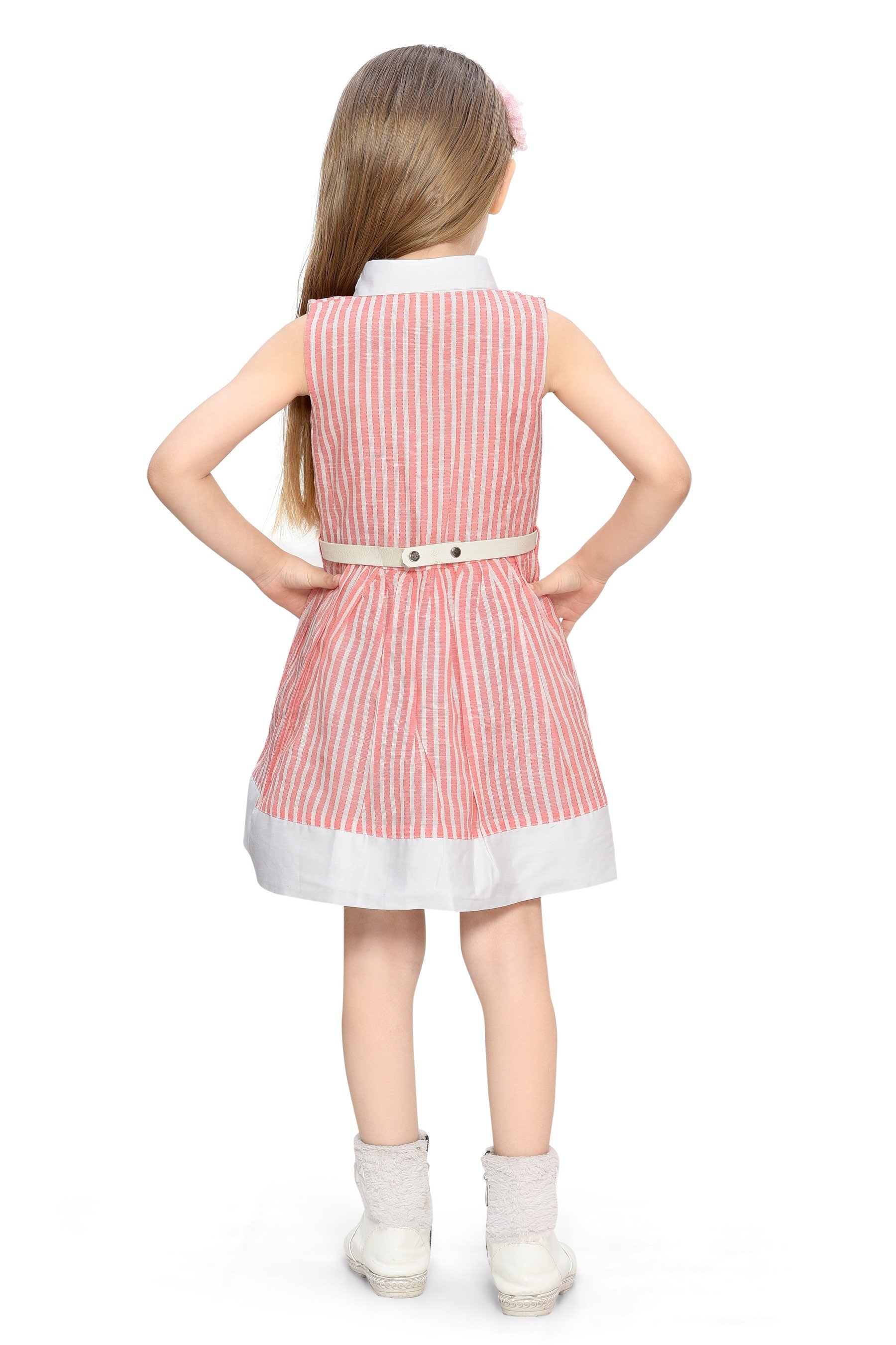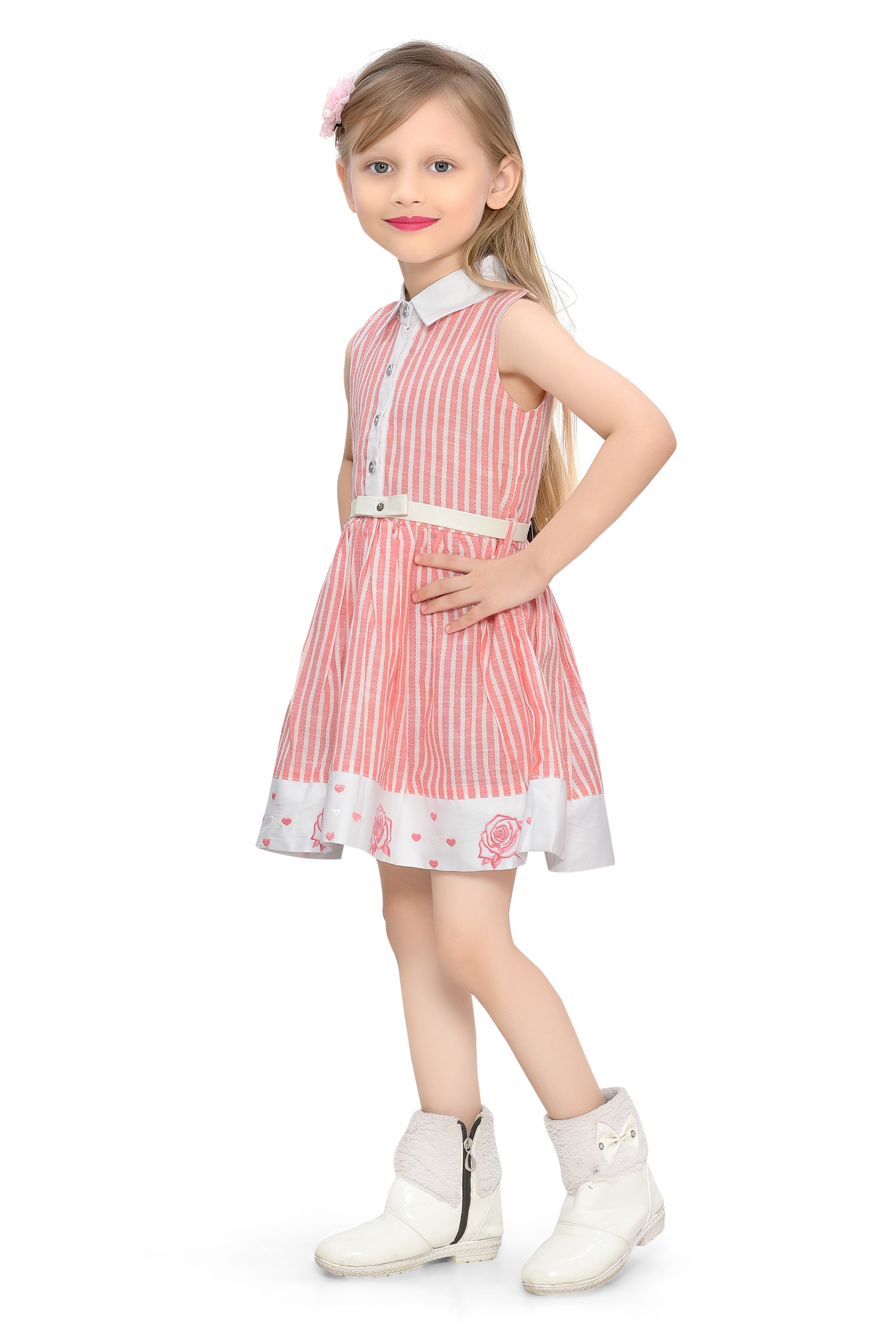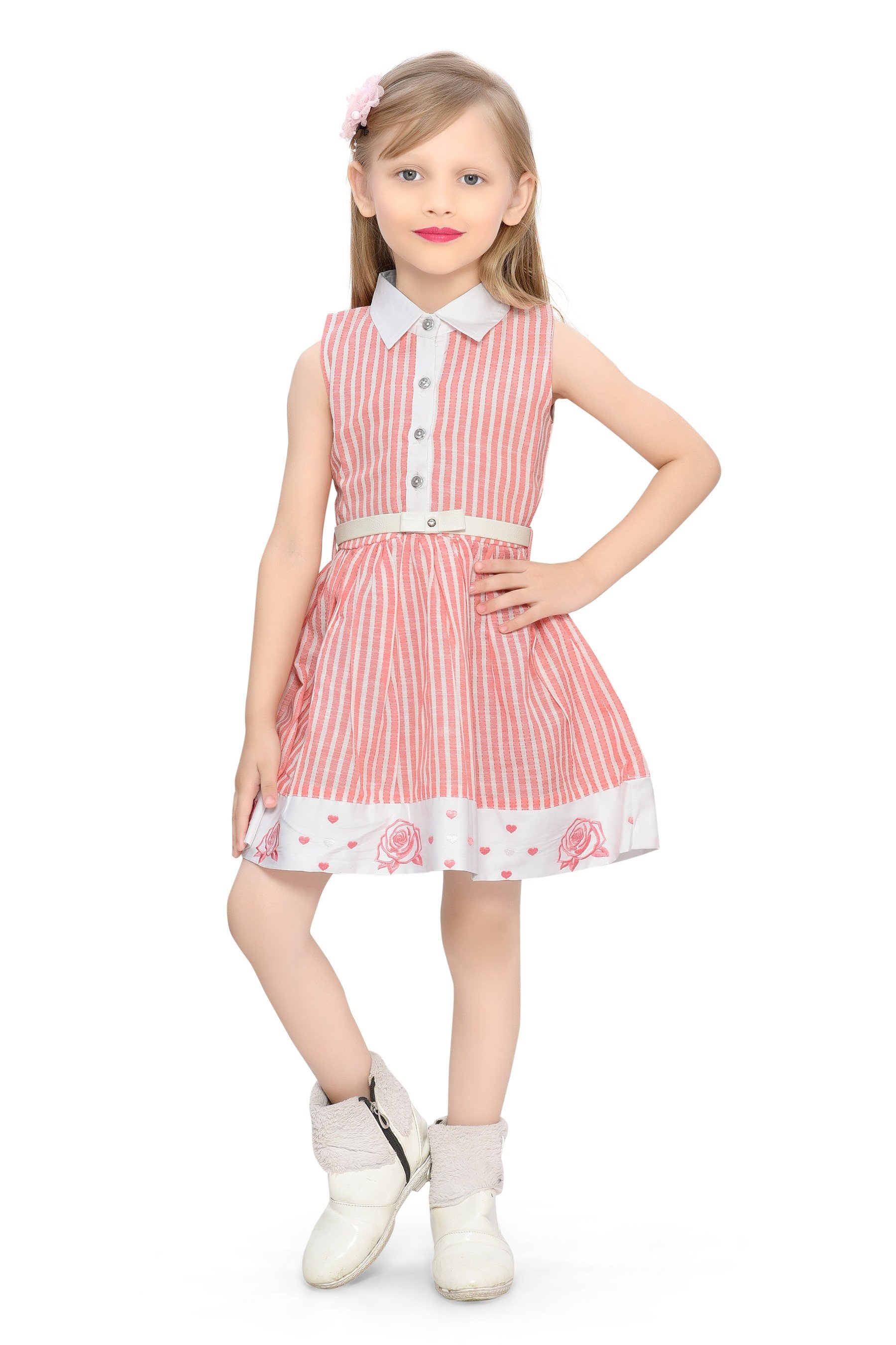 Introducing the Be:Kids Pink Sweet Summer Stripes and Roses Dress, a delightful addition to your little girl's wardrobe that's perfect for sunny days and special occasions alike. This charming dress features a fresh combination of vertical stripes and floral accents, creating a look that's both playful and stylish.
