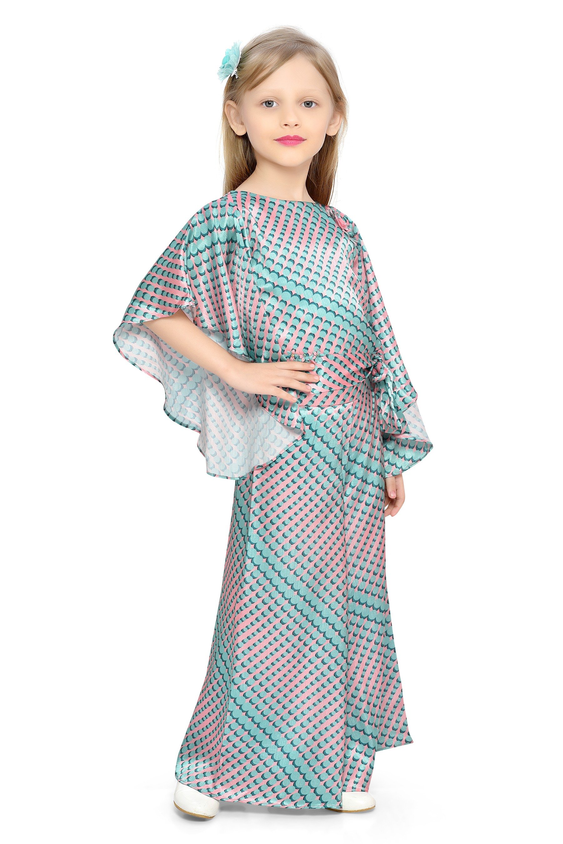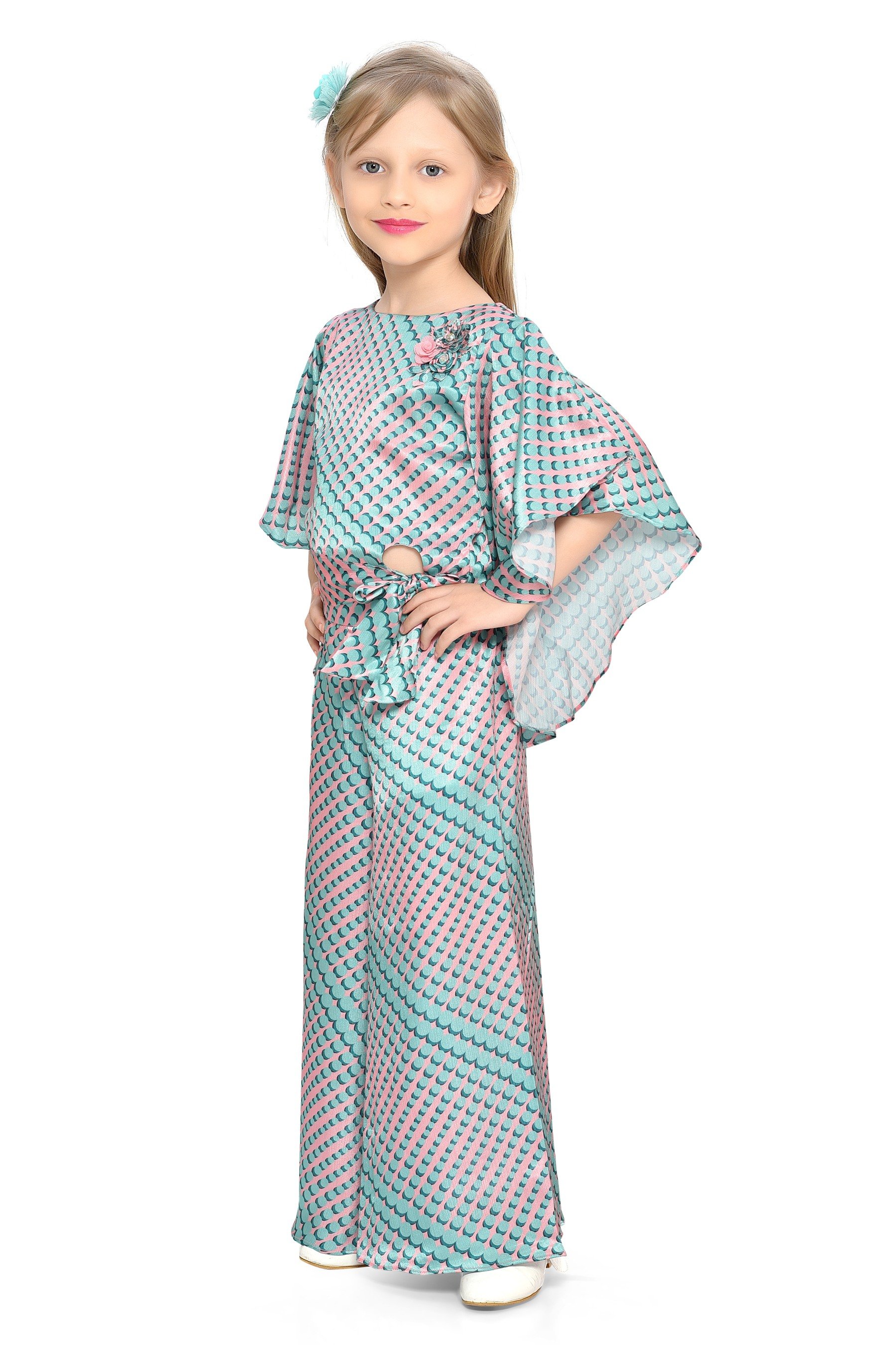 Bring a splash of color and pattern to your little girl's closet with the Be:Kids Green and Yellow Geometric Print Top and Pants Set. This vibrant and stylish two-piece outfit is designed to offer both comfort and fashion for any young trendsetter.