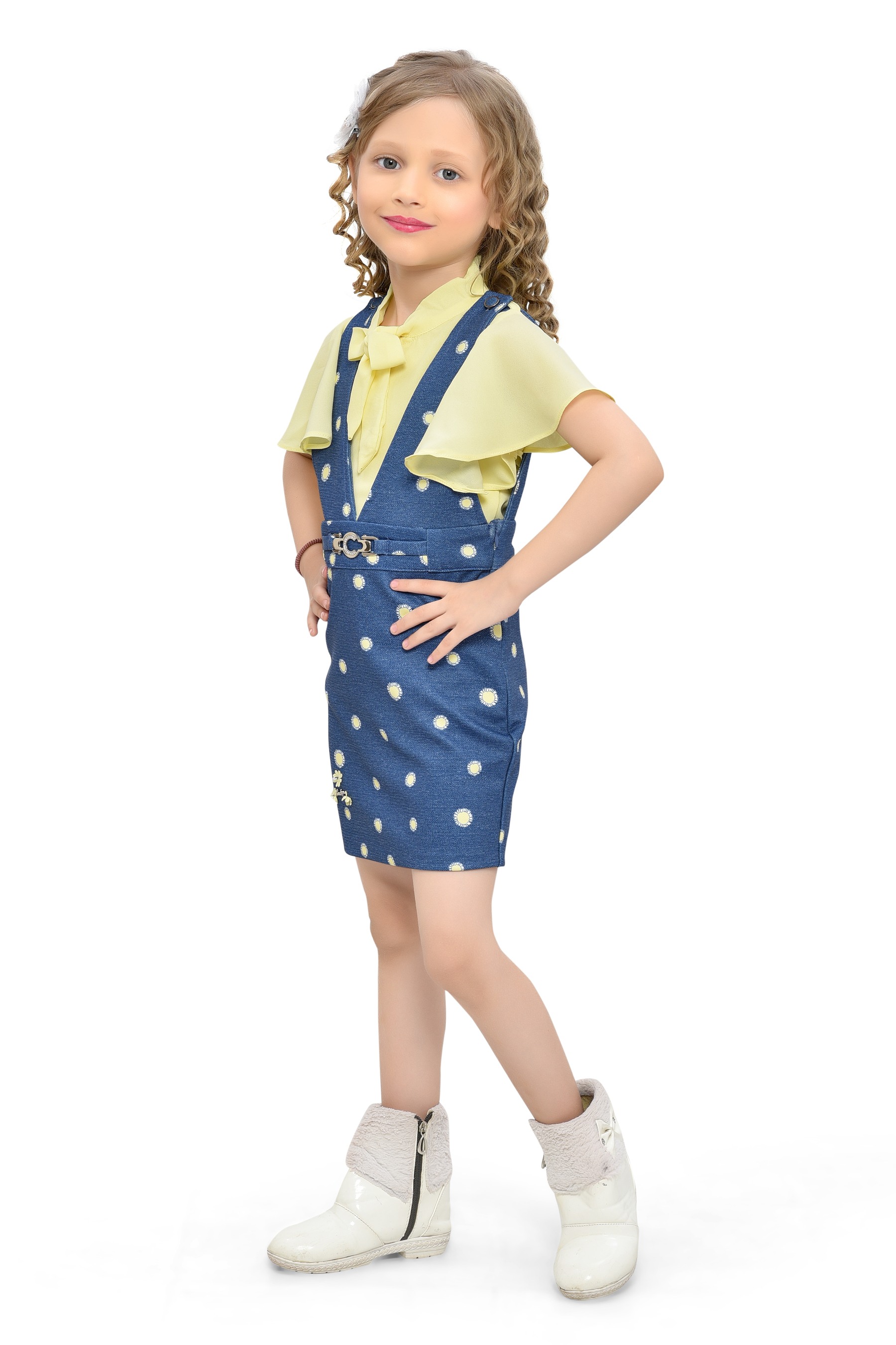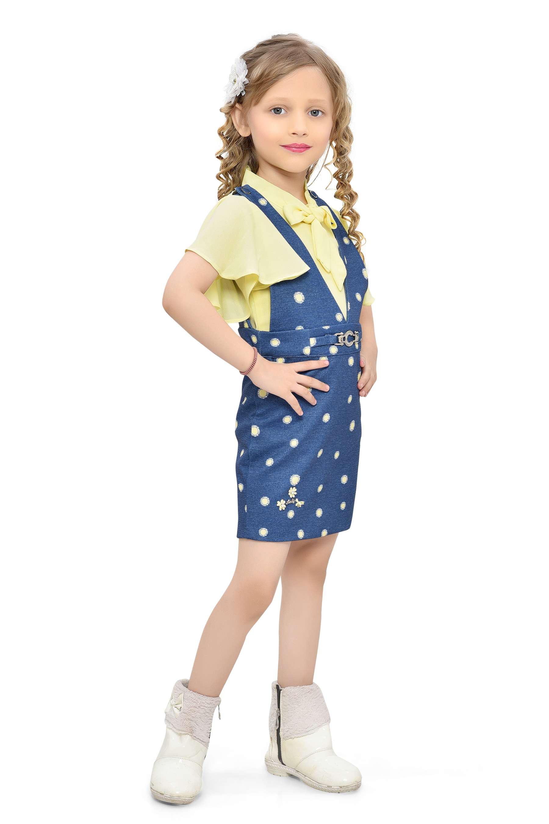 Introduce a dash of whimsy and charm to your little girl's wardrobe with the Be:Kids Yellow Enchanted Polka-Dot Pinafore and Ruffle Blouse Ensemble. This delightful set is the perfect combination of playful patterns and sweet details, designed to make your child look adorable for any occasion.