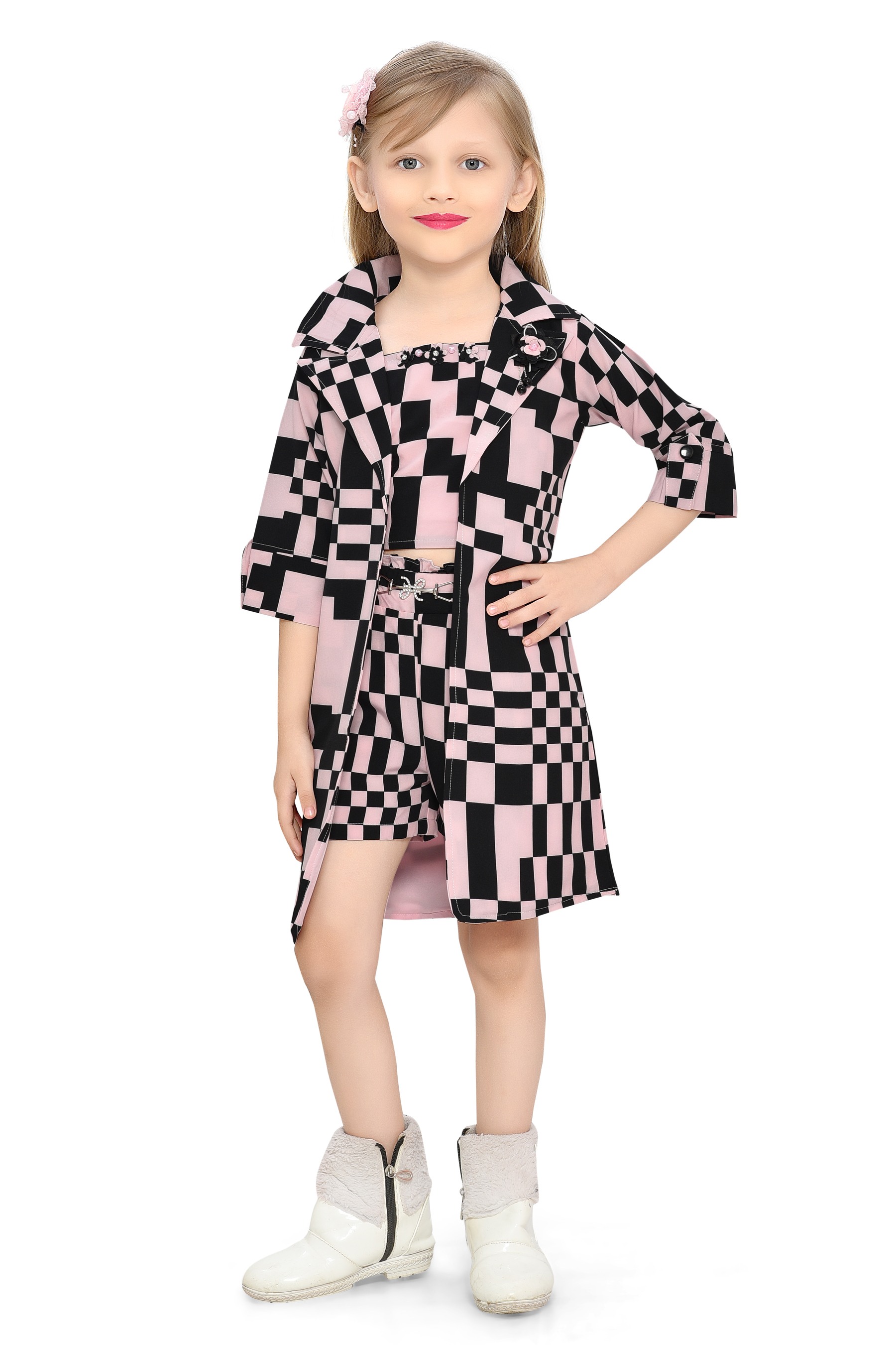 - Trendy Checkerboard Design: A bold and eye-catching black and pink checkerboard pattern gives this outfit a modern and stylish look.